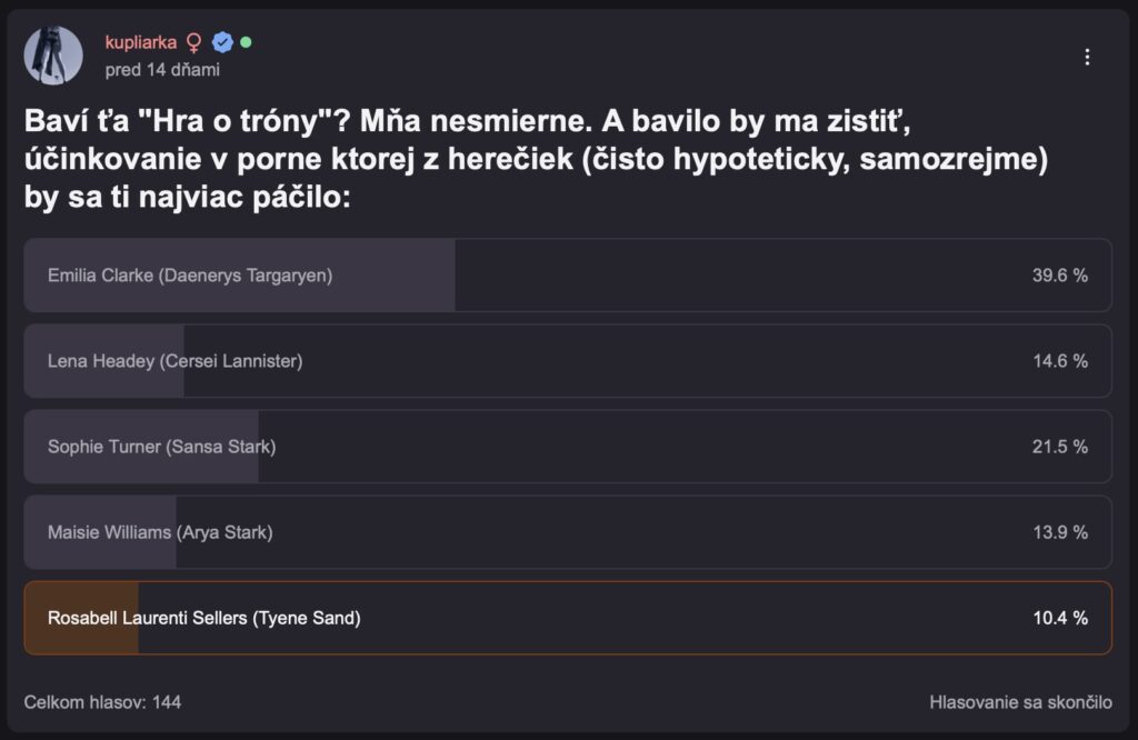 Príbeh s názvom „Hra o tróny“ nebol iba seriál. Bola to výkladná skriňa nahoty, (ženského) mäsa a ponižovania. A diváci sa pozerali. S otvorenými očami, často aj s pokrytectvom. Niektoré telá boli obdivované. Iné odsudzované. Zopár sa ich však vďaka tomu preslávilo. Okrem iných nový pobyt na výslní dosiahla bývalá turecká, v Nemecku žijúca a pôsobiaca bývalá pornoherečka Sibel Kekilli.